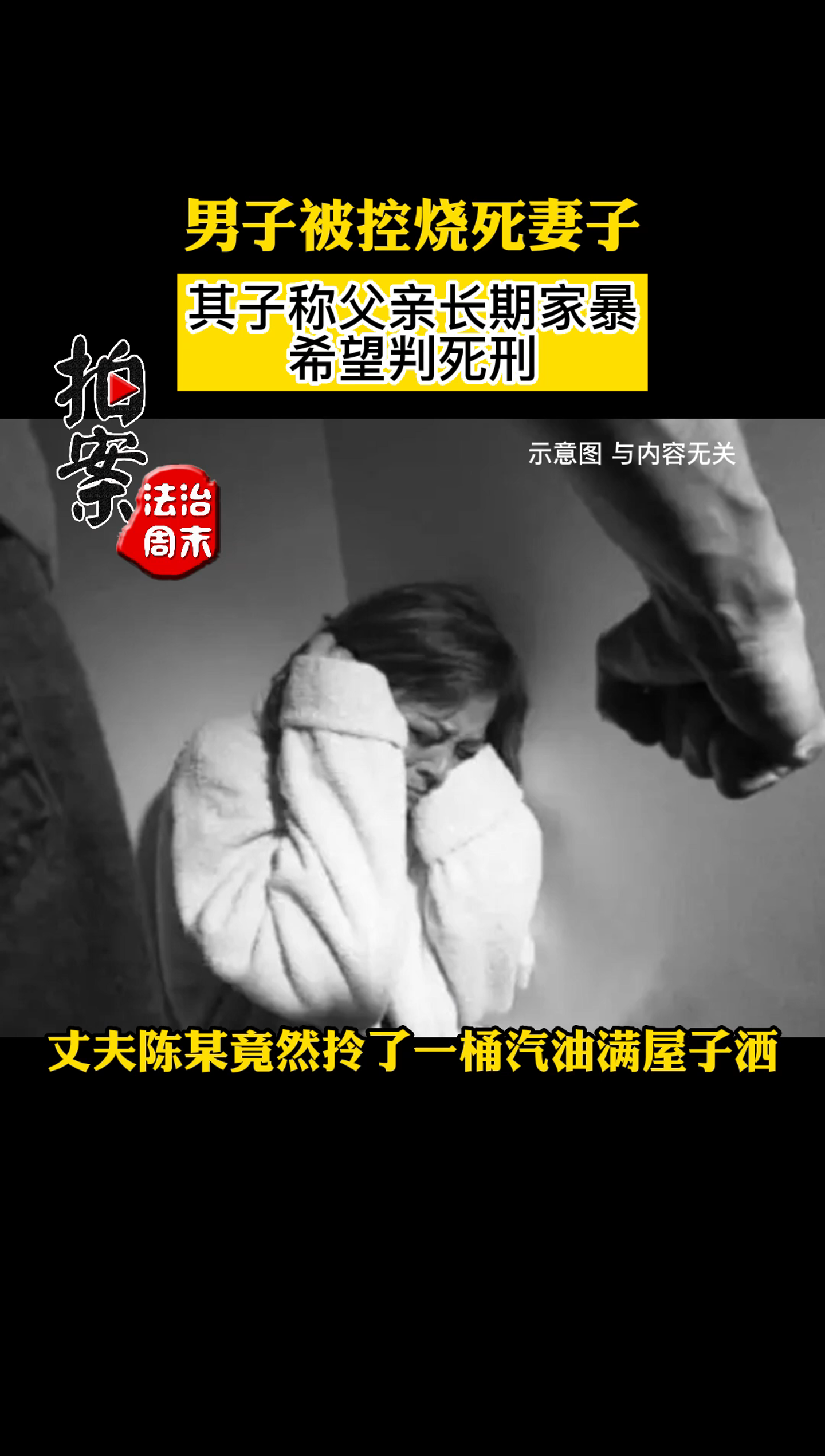 男子被控烧死妻子 其子称父亲长期家暴希望判死刑