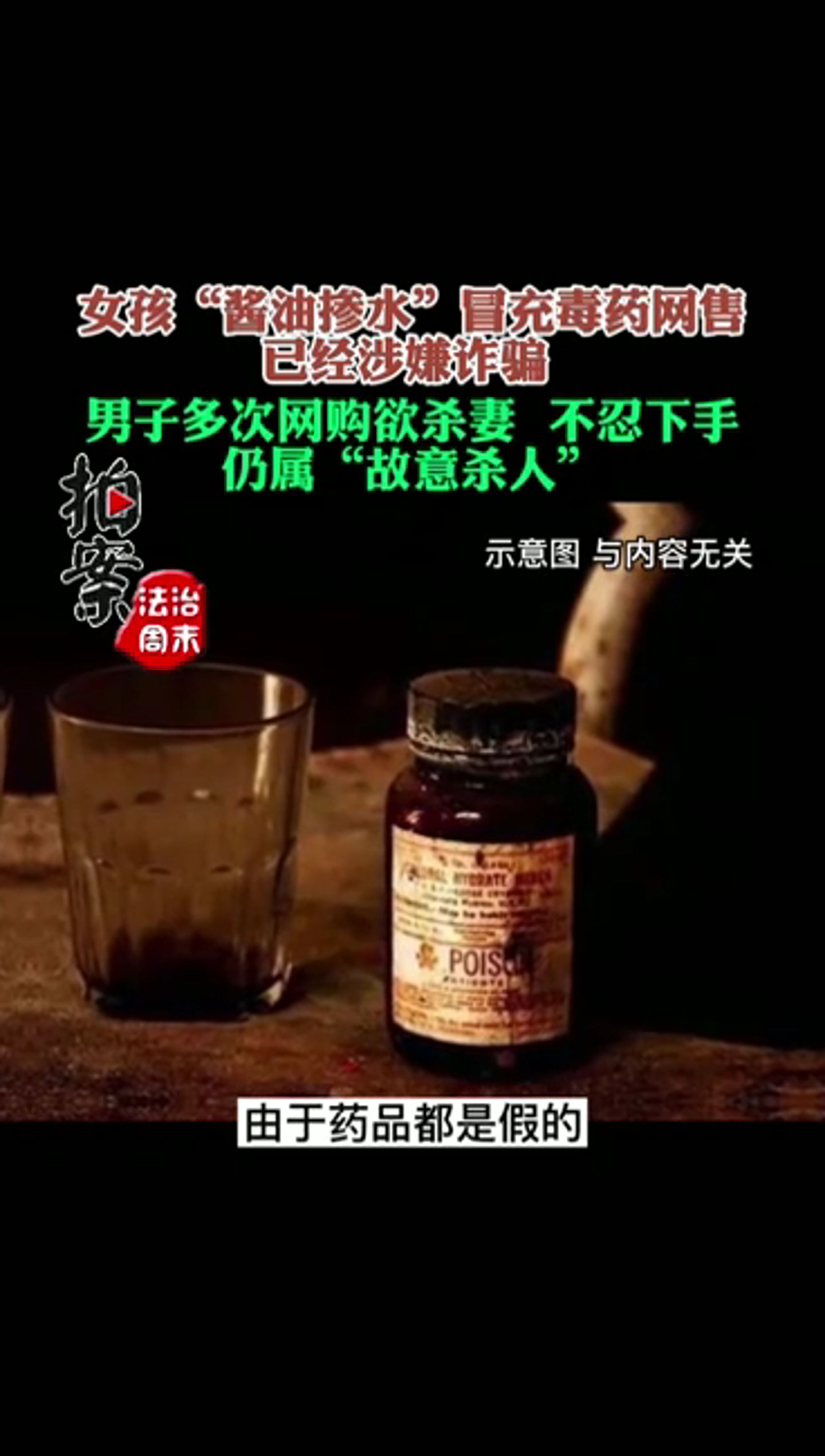 女孩“酱油掺水”冒充毒药网售涉嫌诈骗 男子多次网购欲杀妻 不忍下手 仍属“故意杀人”